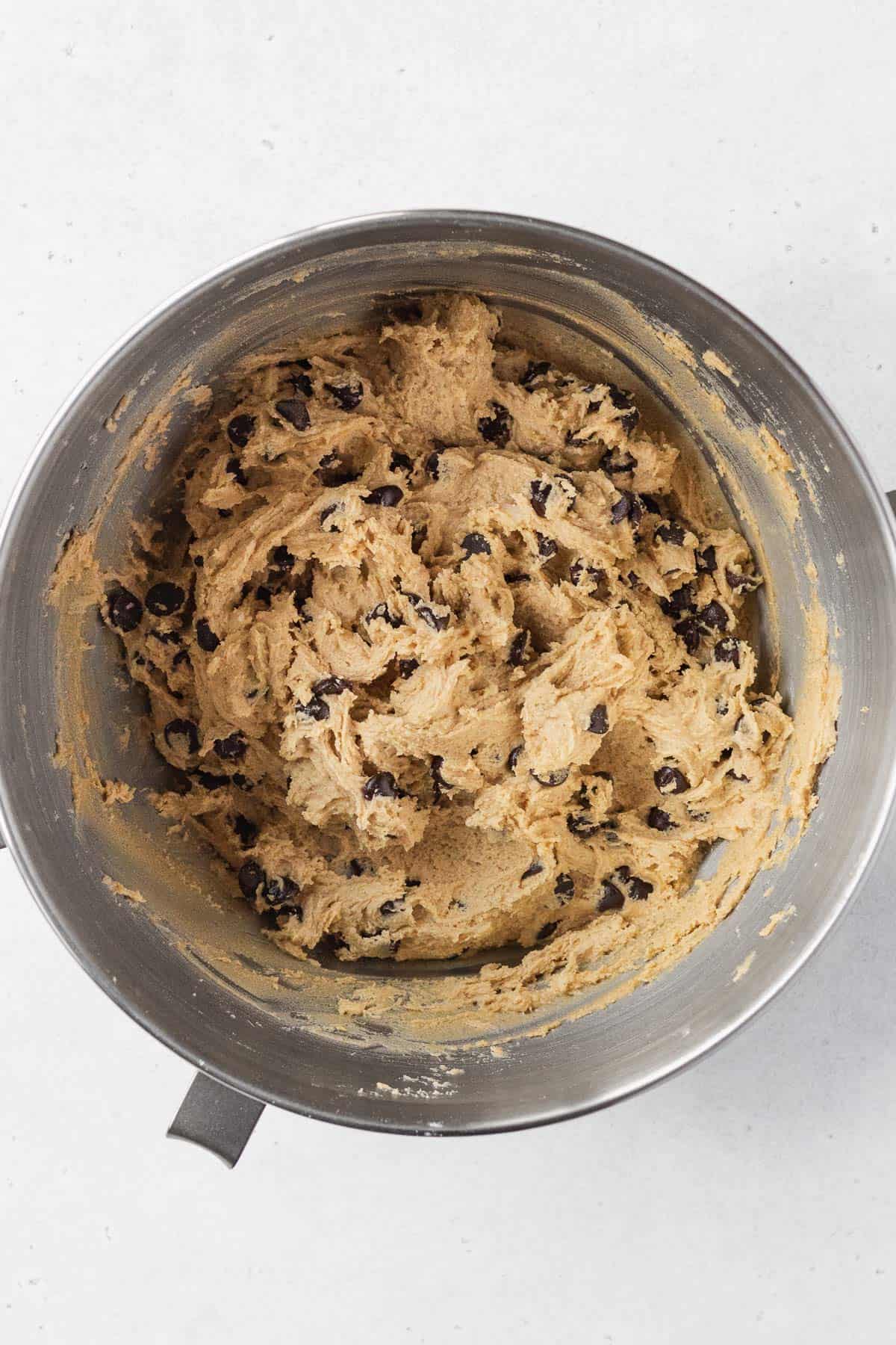 - Fold the chocolate chips in. Cover the bowl and put it in the fridge to chill for at least 2 hours.