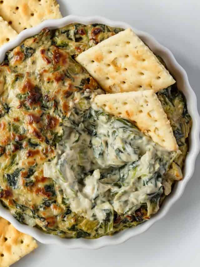 This vegan spinach and artichoke dip is dairy-free and gluten-free but full of creamy coconut milk, cheesy nutritional yeast, and cashews!