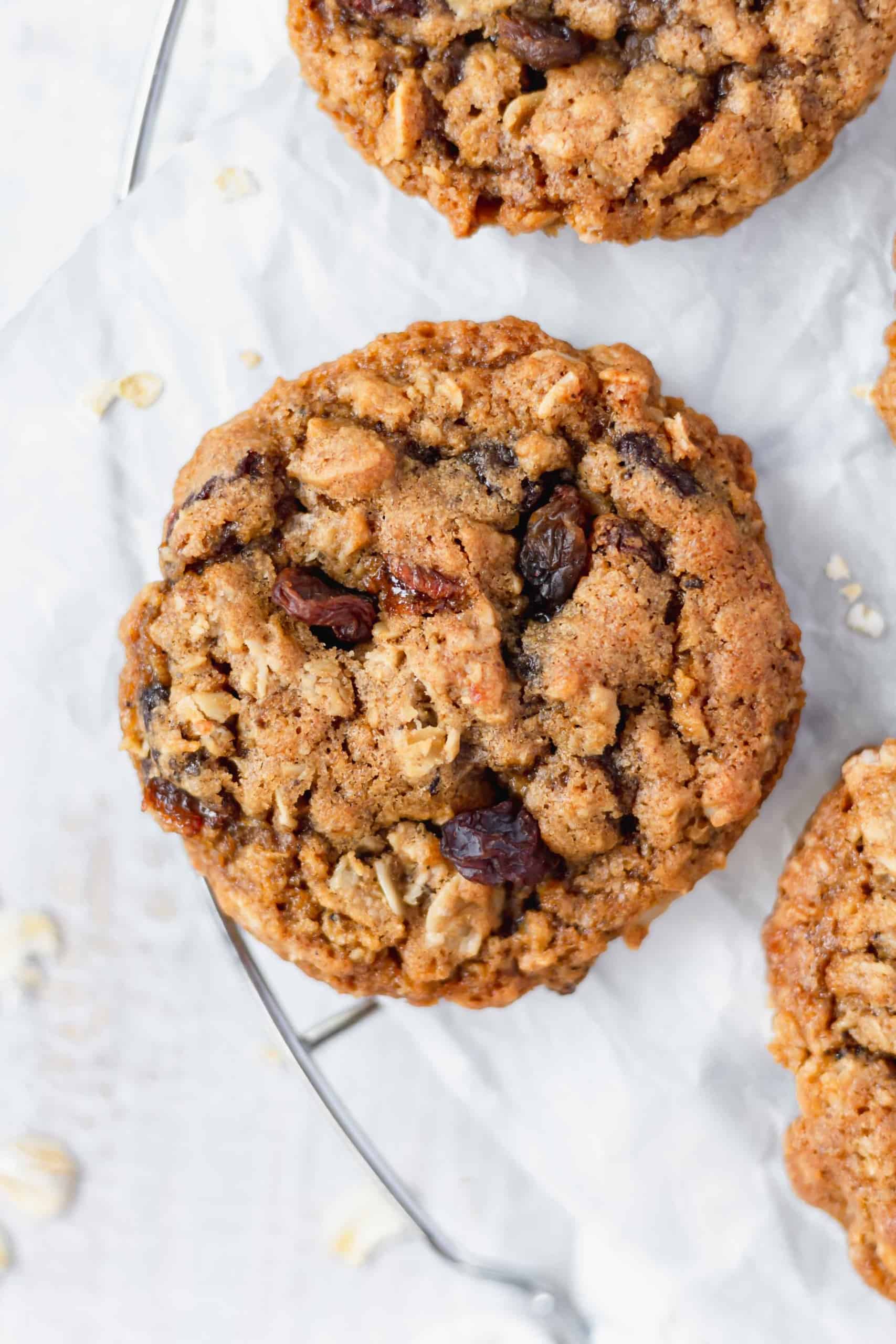 These chewy oatmeal raisin cookies are irresistible! Browned butter, brown sugar, cinnamon, and nutmeg make these cookies soft and delicious!