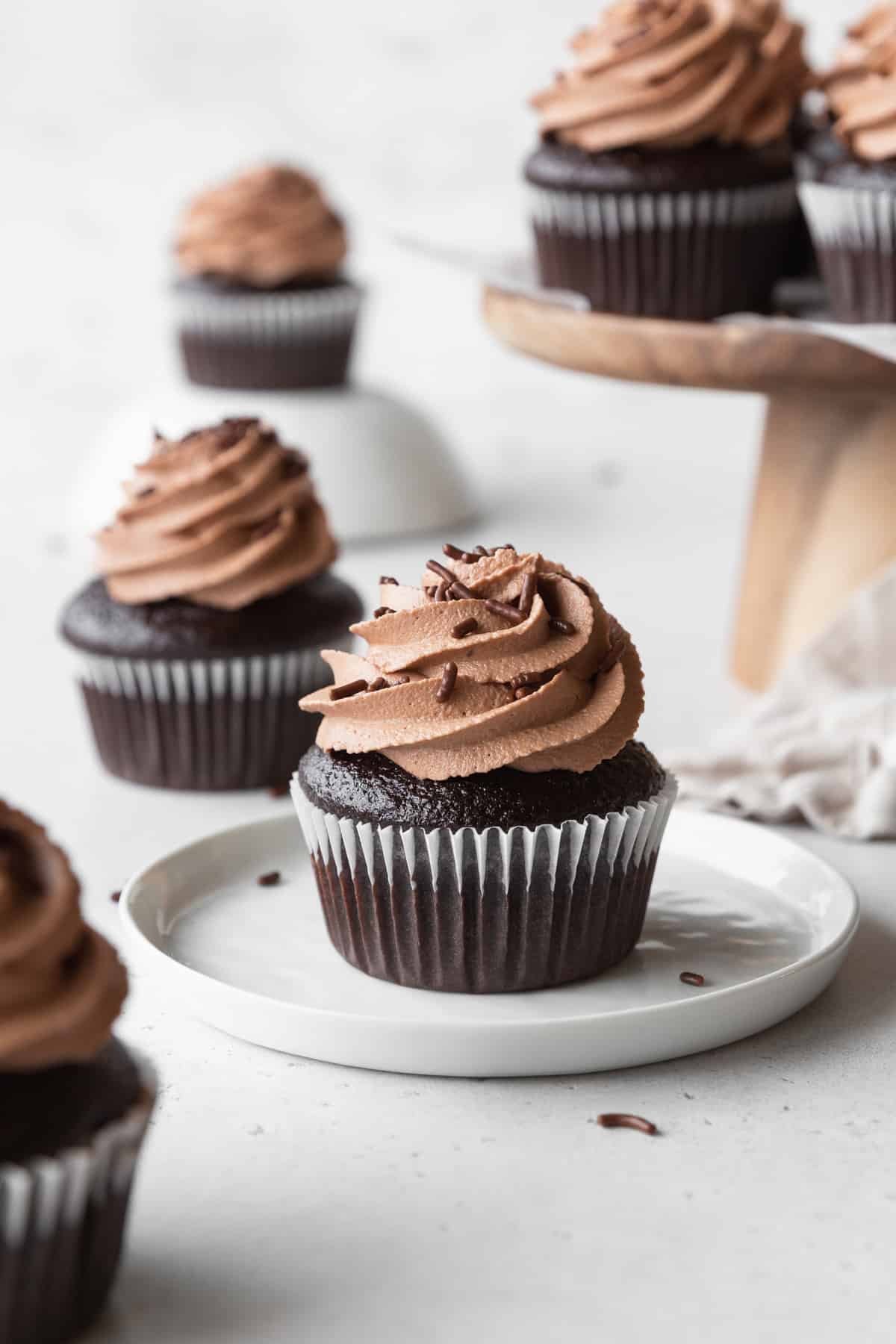 These Chocolate Cupcakes are full of rich chocolate flavor and are super moist and fluffy! For the best chocolate cupcakes, make sure to use Dutch-processed cocoa powder and top them with chocolate cream cheese frosting.