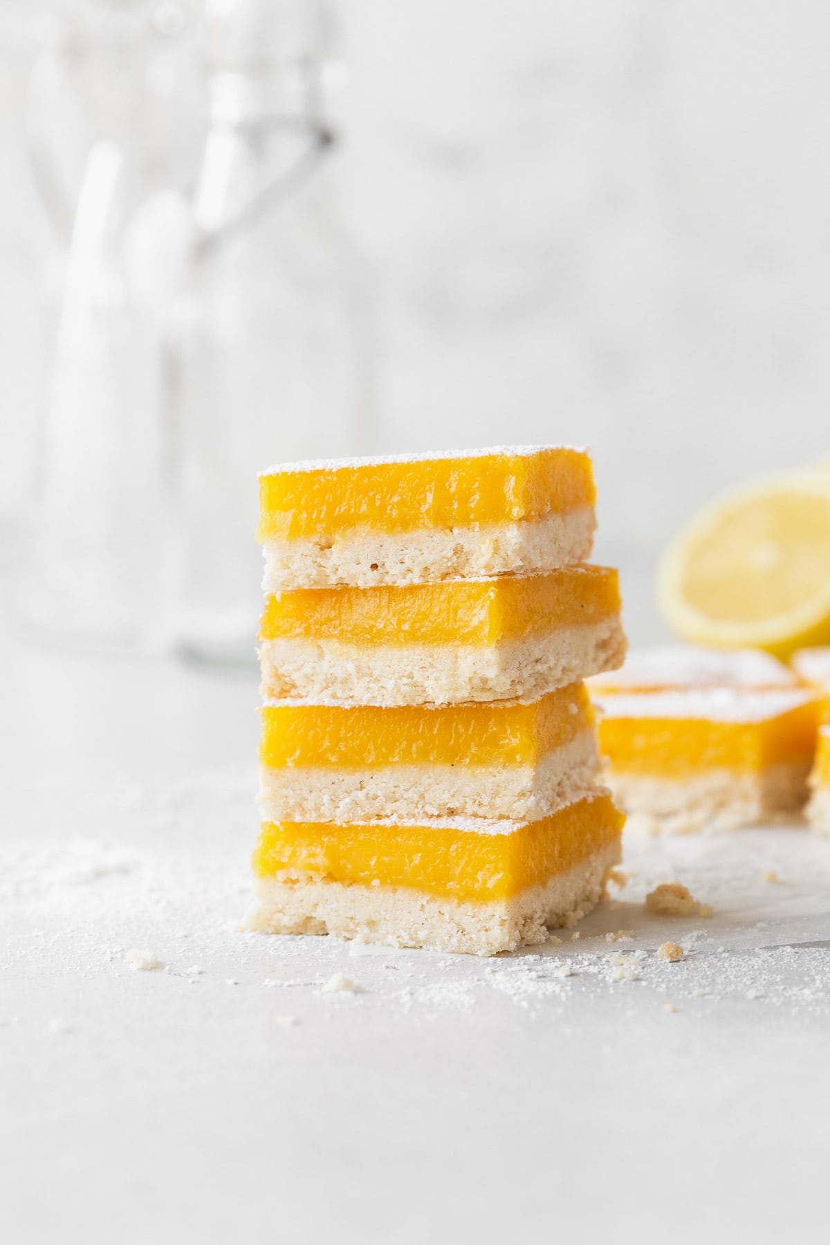 Buttery, lemony, bright, and sweet but without any dairy or butter. These bars are a true taste of sunshine.