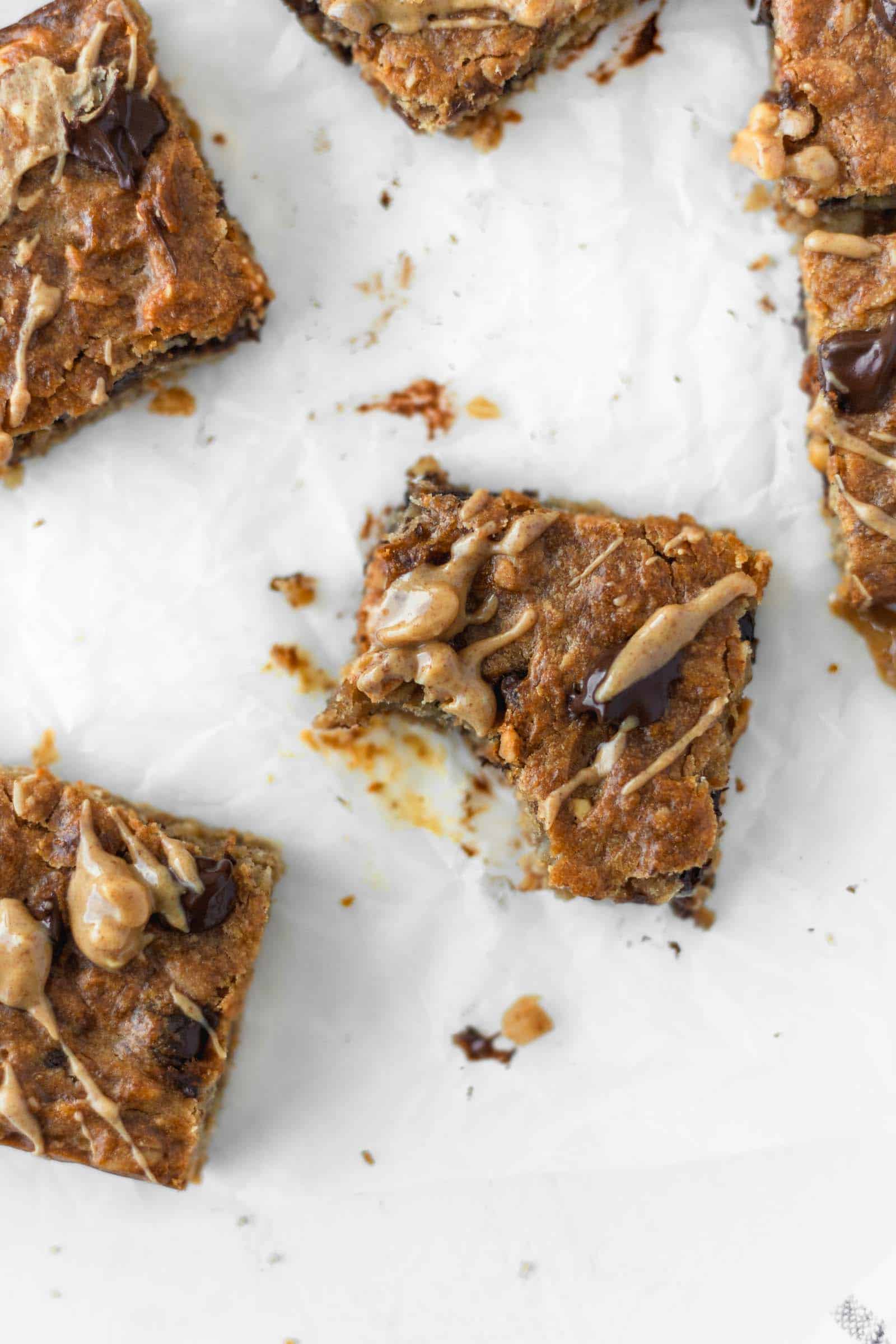 This one-bowl recipe for peanut butter banana oatmeal bars is a keeper! It's a super easy gluten-free and vegan snack filled with chocolate chips!