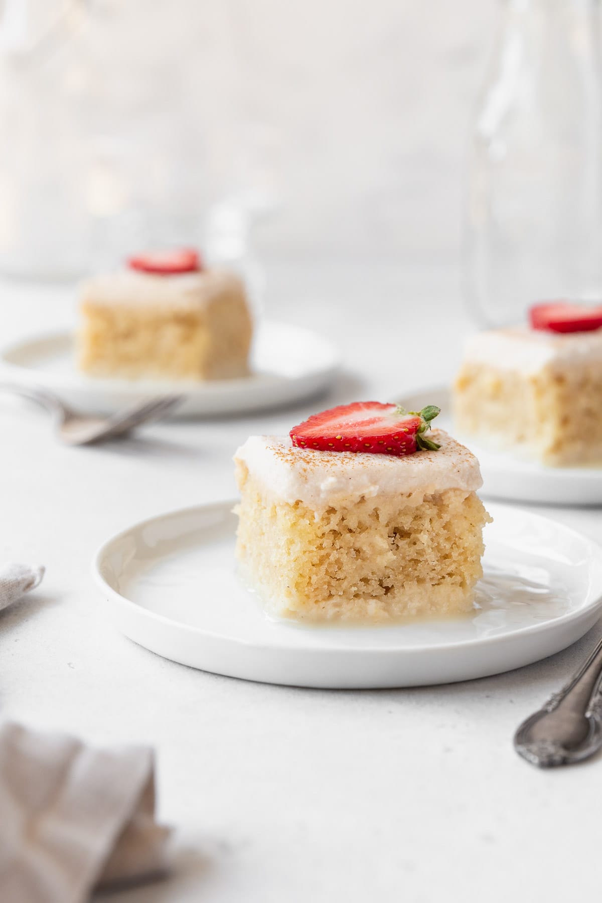 Decadent, sweet, and moist Gluten-Free Tres Leches Cake is easy to make and beautiful to serve for your next gathering or celebration.